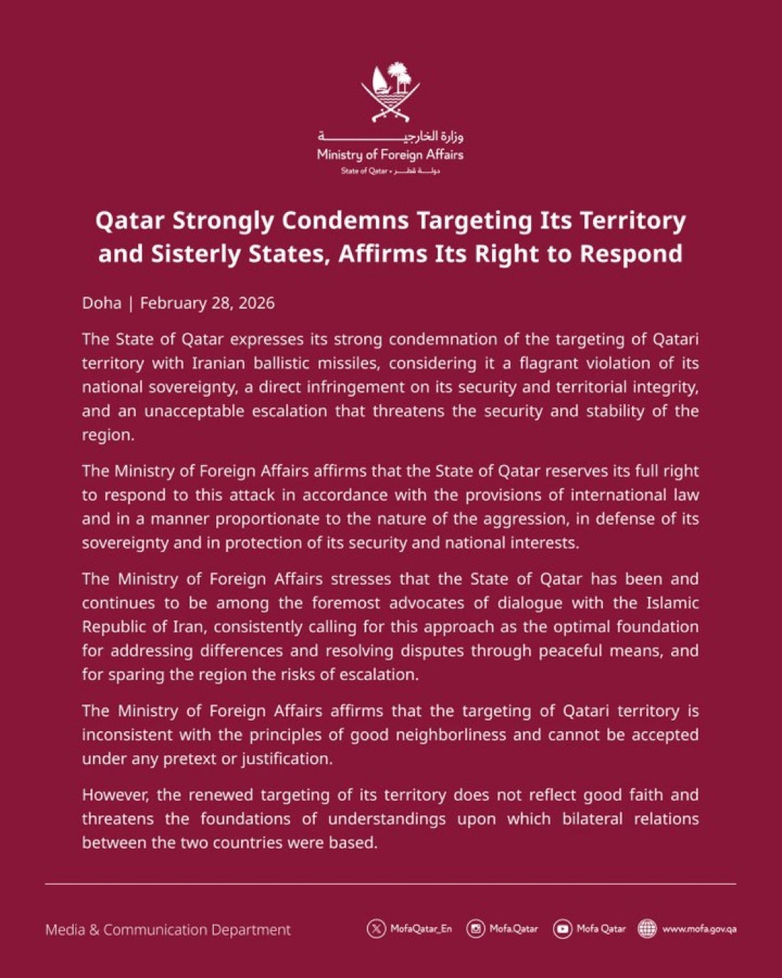 The Gulf states did not initiate this conflict.